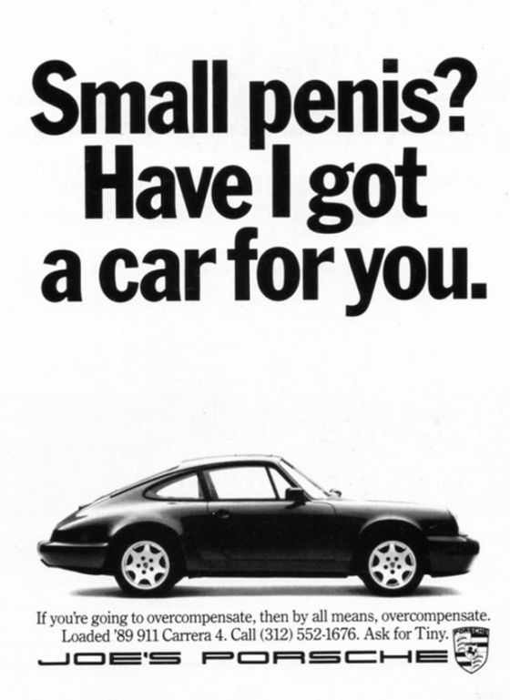 Quizá todos los que han hecho algún anuncio para Porsche han pensado algo parecido, pero nunca han llegado a publicarlo, porque los hombres con pene pequeño tampoco tienen un sentido del humor grande.