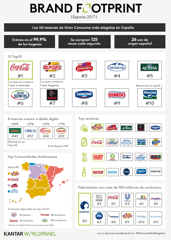 Kantar Worldpanel presentó su estudio Brand Footprint donde Coca-Cola, El Pozo y Campofrío vuelven a ser las marcas de Gran Consumo más elegidas en España.