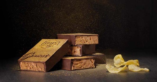 De la mano de Albert Adrià esta reinterpretación del turrón es el resultado de una deliciosa combinación de praliné de nueces de macadamia tostada, chocolate, caramelo, sal y las patatas fritas Lay’s Gourmet.