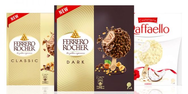 Grupo Ferrero entra a partir de este mes en el mercado heladero con las marcas Raffaello y Ferrero Rocher. Además, los helados de Ferrero serán “Made in Spain”, ya que se producirán en la planta que la compañía ICFC (Ice Cream Factory Comaker) tiene en la localidad valenciana de Alzira. Desde su fábrica española distribuirá sus nuevos helados en España, pero también producirá para Italia, Francia, Austria y Alemania.