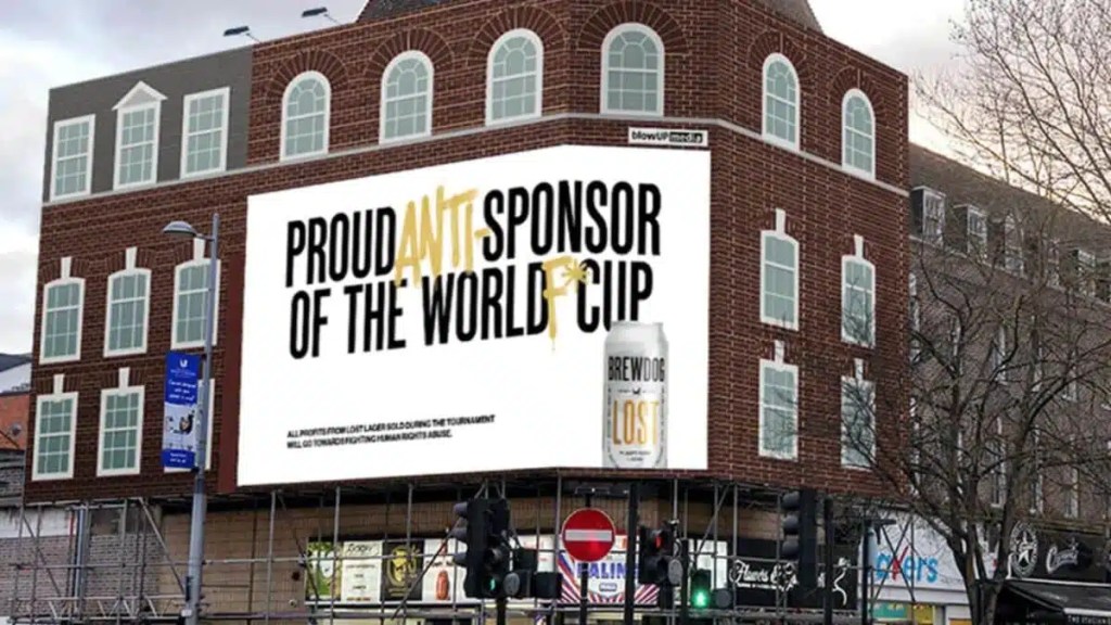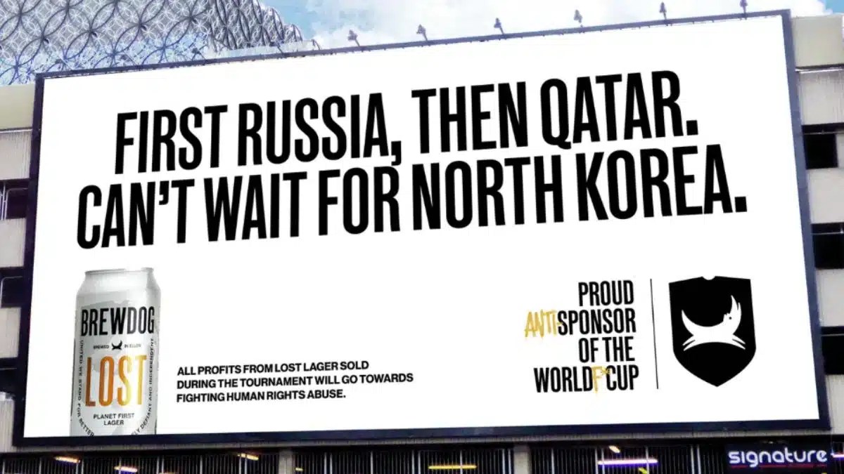 Esta semana la cervecera BrewDog lanzaba una campaña en la que se presentaba como el antisponsor del mundial de Catar. La compañía señala que, «en Catar la homosexualidad es ilegal, la flagelación es una forma de castigo aceptada y está bien que 6.500 trabajadores mueran construyendo su estadio». La marca anunciaba que todos los beneficios de las ganancias de la «Lost Lager» vendidas durante la celebración de la Copa Mundial se destinarán a luchar por los derechos humanos. Ahora bien, omitió que BrewDog emitirá los partidos en vivo en varios lugares, y sacará beneficios de las ventas generadas en comidas y bebidas, no solo la Lost Lager.