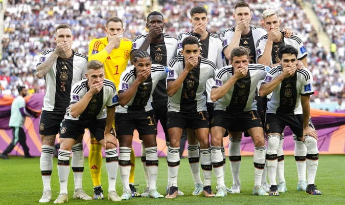 El miércoles fue el turno de los alemanes, que ante la prohibición de lucir el brazalete arcoíris optó por posar tapándose la boca en señal de protesta.