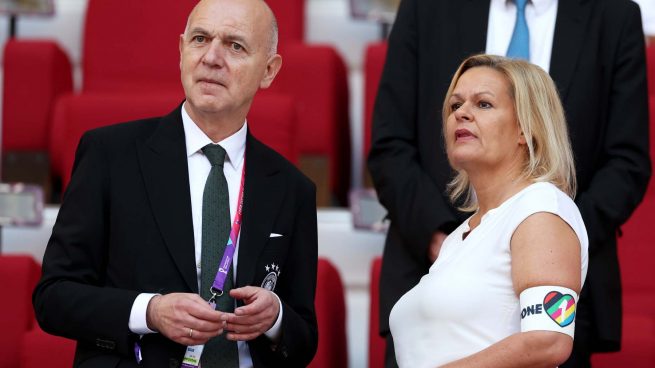 Sin miedo a posibles sanciones o represalias, la ministra de interior de Alemania Nancy Faeser, si lució el brazalete One love en el palco de autoridades durante el duelo de la selección germana con Japón.