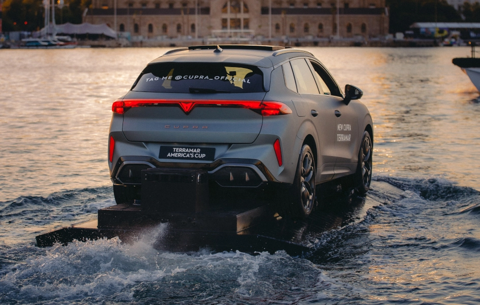 Por ello, y además de con la intención de hacer gala de “su lado rebelde y vanguardista”, se ha desarrollado una sorprendente variante del Terramar, el Cupra Terramar America’s Cup, que navega. El vehículo encabezará a los barcos de la categoría AC75 guiándolos hasta la salida del puerto de la Louis Vuitton Cup. Además, ayudará a transportar las boyas o marks de la carrera.