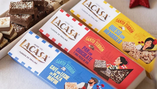 Chocolates Lacasa lanza la colección Santos Turrones: Turrón de Café con Leche en Plaza Mayor, Turrón de Queso con Membrillo, Turrón de Pan con Chocolate.