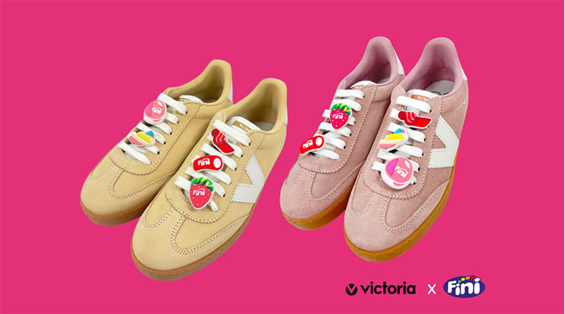 Victoria y Fini Golosinas lanzan una colección de zapatillas personalizables con «charms» de dulces icónicos de Fini, que estarán disponibles en dos colores y con aroma a golosina.